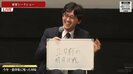 2025年は叡王初防衛、さらに王座奪取とタイトル戦を戦い抜き、飛躍の年とした伊藤二冠。勝局をピックアップするかと誰もが期待を込めたが、「一番印象に残ったのは、“2日前の明日斗戦”です」。直筆で記したホワイトボードを掲げると、意外な回答にファンも騒然となった。