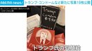 そのうちの1枚に写っているのはトランプ氏の似顔絵が描かれた四角いパッケージ。「アイム・ヒューーージ!僕はでっっっっかいんだ!」と書かれ、その後ろには「トランプ・コンドーム $4.50」と書かれたサインが置かれている。