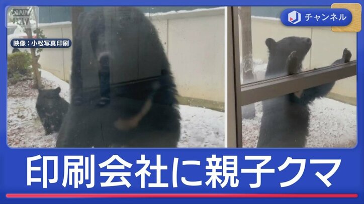 なぜ?積雪のなか印刷会社に親子クマ カメラ捉えた驚きの行動 2025/12/16 20:30 拡大する 今度は印刷会社にクマが現れました。しかも親子です。緊迫の一部始終を複数のカメラが捉えていました。【画像】ガラス窓に覆いかぶさるように立ち上がる母クマ 奥には子グマの姿 ガラス窓の向こうに現れたのは、大きなクマ。奥には子グマの姿も。 12日午前9時ごろ、山形県の印刷会社に突如、親子のクマが現れました。 母グマがガラス窓に覆いかぶさるように立ち上がります。前脚には、長く鋭い爪が。 雪が積もる中庭。12月半ばになっても、冬眠しないクマが目の前に現れ、驚く従業員たち。 続きを読む