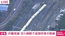 JR鶴見線 浜川崎駅で貨物列車が脱線 速報 2025/12/17 16:43 【映像】脱線した貨物列車(現場の様子) この記事の写真をみる(2枚) 川崎市にあるJR鶴見線の浜川崎駅で貨物列車が脱線しました。現時点でけが人は確認されていないということです。【映像】脱線した貨物列車(現場の様子) JR貨物によりますと午後3時半ごろ、浜川崎駅付近に停車しようとした貨物列車で緊急ブレーキがかかり、このうち1両が脱線しました。脱線があったのは貨物列車専用の線路で、けが人は確認されていないということです。復旧の見込みはたっていません。 JR東日本によりますと、この影響でJR鶴見線は浜川崎駅と鶴見駅の間の上りの一部の列車で遅れが出ているということです。(ANNニュース) この記事の画像一覧 【画像】脱線した貨物列車(現場の様子) 【映像】首都高で時速180キロ…中国人が危険運転 【画像】16歳だった元舞妓が飲酒させられている様子(複数カット) この記事の写真をみる(2枚) Twitter