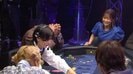 序盤からバチバチの読み合い、そして今大会ならではの“煽り合い”が続いた予選テーブルAの中盤。アントニーは3万3000点のポットを持ち、8人中6位という状況。挽回を期すアントニーはダイヤとハートの「Q6」という手で1600点のチップを出した。これに対して元AKB48で女優の篠崎彩奈が、スペードの「J8」でコールした。
