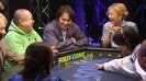 予選テーブルAの序盤、このシーンでは狩野がダイヤとクラブの「A6」で参戦。三浦翔平はスペードの「K9」、吉村崇(平成ノブシコブシ)はハートとダイヤの「AJ」でそれぞれ勝負に挑んだ。ボードにスペードの「6」、ハートの「2」、クラブの「2」が並び、狩野は「6」のペアが成立。他の2人はまだ役がない状況だった。ここで三浦がチェックし、吉村が2000点をベット。すると狩野は5000点を差し出す積極策に出た。吉村は迷わずコールし、三浦は撤退を選んだ。