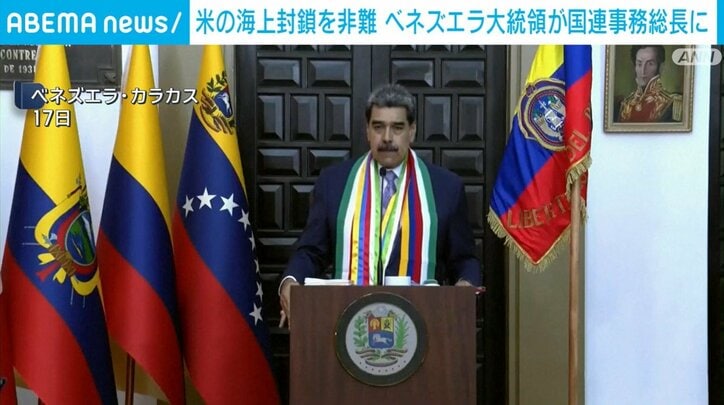米の海上封鎖を避難 ベネズエラ大統領が国連事務総長に 速報 2025/12/18 17:19 拡大する 南米ベネズエラのマドゥロ大統領は、国連のグテーレス事務総長と電話会談し、アメリカのトランプ政権の海上封鎖措置を「主権に対する脅威」と非難しました。 ベネズエラ政府によりますと、マドゥロ氏は17日、トランプ大統領が制裁対象の石油タンカーについて「全面封鎖」を命じたことについて「主権と国際法、平和に対する脅威」と非難し、国連として拒否するよう求めました。 国連は、グテーレス氏が「加盟国が国連憲章を尊重し、地域の安定を維持するために緊張緩和に努める必要がある」と述べたとしています。 続きを読む