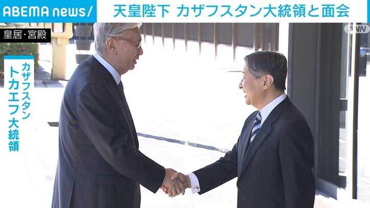 天皇陛下 カザフスタン大統領と面会 速報 2025/12/18 17:19 拡大する 天皇陛下は、カザフスタン大統領と皇居で面会し、昼食会を開いてもてなされました。 天皇陛下は、午前11時半すぎ、皇居の宮殿で来日中のカザフスタンのトカエフ大統領を出迎え、握手を交わされました。昼食会には秋篠宮さまも参加して食事を楽しまれました。 陛下と大統領は水問題について話を交わし、陛下は、世界最大の湖として知られるカスピ海の水位が急速に下がっていることに触れられたということです。 大統領が国連などの取り組みも十分ではないと指摘すると、陛下は、「水問題は多くの人が手を携えて取り組んでいかなければいけない問題と考えている」と話されたということです。 続きを読む