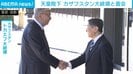 天皇陛下は、午前11時半すぎ、皇居の宮殿で来日中のカザフスタンのトカエフ大統領を出迎え、握手を交わされました。昼食会には秋篠宮さまも参加して食事を楽しまれました。