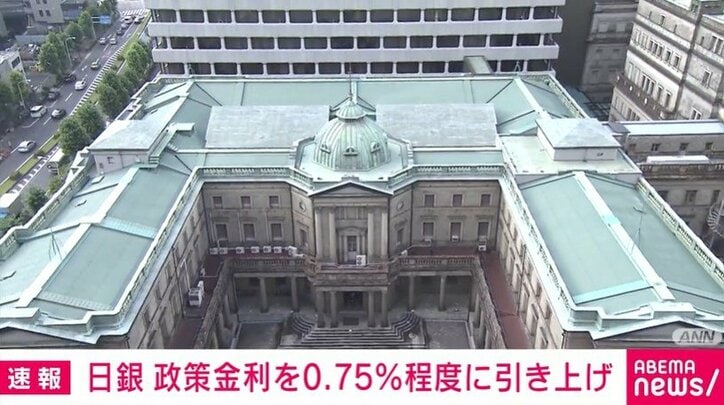 日銀 政策金利を0.75%程度に引き上げ 速報 2025/12/19 13:13 拡大する 日本銀行は金融政策決定会合で、今年1月以来となる利上げを決めました。 政策金利である短期金利の誘導目標をこれまでの0.5%程度から、30年ぶりの高い水準となる0.75%程度に引き上げます。(ANNニュース) 続きを読む