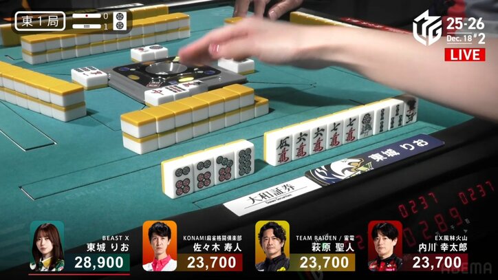 高目を引いて、ズバっとリーチ!美人雀士の喜びが隠し切れない表情に共感続々「そら笑うわw」「ニコニコで可愛すぎる」/麻雀・Mリーグ Mリーグ 2025/12/19 16:29 拡大する あまりの会心テンパイすぎて、笑顔を堪える方が必死のようだ。「大和証券Mリーグ2025-26」12月18日の第2試合に出場したBEAST X・東城りお(連盟)が、親番で絶好の引きでテンパイして即リーチ。期待通りの展開に、思わず顔がほころぶところを耐える様子がカメラに抜かれ、ファンが大ウケすることになった。 東城といえば、Mリーグのみならずプロ麻雀界でも屈指の美女雀士として知られる存在。今シーズンから2年ぶりにMリーグ復帰を果たすと、さらに磨きをかけた美貌と麻雀でファンを盛り上げると、チームにも貢献。キャプテンを務め、麻雀もムード作りも全力。前年最下位のチームを、現在3位に躍進させている貴重な存在だ。 続きを読む