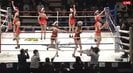 話題のシーンは19日、東京・後楽園ホールで行われた「Krush.183」で起こった。2試合のプレリミナリーファイトを経て、本戦前に8人の『Krush GIRLS』がリングに登場。各々の紹介を行った直後、観客席にボールを投げ込む際にそれは起こった。