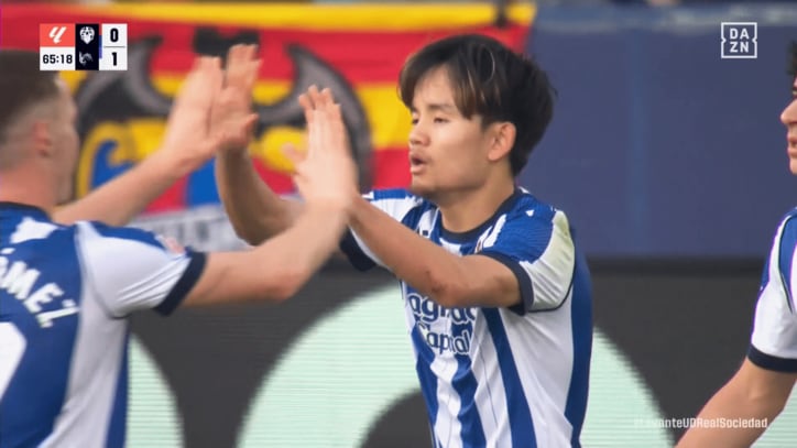 なぜ「謝罪」?久保建英、“プロ初ヘディング弾”後に「異例のジェスチャー」現地メディアは「深い意味が込められている」と報道 ラ・リーガ久保建英 2025/12/22 11:48 拡大する 【ラ・リーガ】レバンテ 1-1 レアル・ソシエダ(日本時間12月21日/エスタディオ・シウダ・デ・バレンシア) レアル・ソシエダのMF久保建英が、プロキャリアで初となるヘディングゴールで今季2点目を挙げた後に見せた“謝罪”セレブレーションに、スペイン・メディアが反応している。 今月14日にセルヒオ・フランシスコ前監督を解任したソシエダは、Bチームを率いるジョン・アンソテギ暫定監督の下でラ・リーガ第17節のレバンテ戦を迎え、久保はこれまでと同様に右のウイングとして先発出場している。 続きを読む
