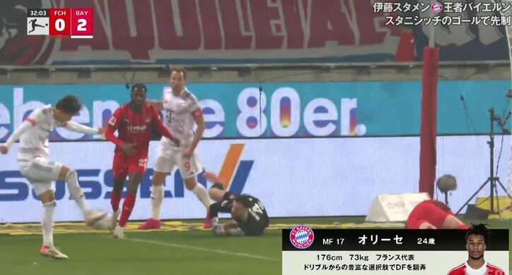 どうなってんだ?日本代表DF、追加点を呼び込んだ“ダイレクトシュート”が話題に「狙ったなら天才」「アシストつけてください」 ブンデスリーガバイエルン,伊藤洋輝 2025/12/23 07:00 拡大する 【ブンデスリーガ】ハイデンハイム 0-4 バイエルン(日本時間12月22日/フォイト・アレーナ) バイエルンに所属する日本代表DFの伊藤洋輝が見せた“ほぼアシスト”となるプレーにファンがざわついている。 バイエルンは日本時間12月22日、ブンデスリーガ第15節でハイデンハイムと対戦。2試合連続での先発出場となった伊藤は、左サイドバックでプレーした。 15分にバイエルンMFヨシプ・スタニシッチのゴールで先制して迎えた32分、伊藤がゴールに迫る。右サイドでボールを受けたMFレナート・カールがアーリークロスを入れるが、逆サイドのFWハリー・ケインが合わせる手前でGKのパンチングに防がれた。このこぼれ球に反応した伊藤は、バックステップを踏みながら右足ダイレクトで合わせる。 続きを読む