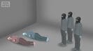 一度辺りを見回してから画面奥側へ向かうと、後を追うように別の2人も同じ方向へ向かいます。