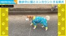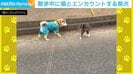 散歩中の柴犬が、猫と遭遇し、慌てて戦闘態勢になる様子が、SNSで話題となっている。