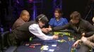 アントニーは2万800点のチップを持つ6位という状況。5万点以上を抱える三浦翔平を逆転し、4位以内に食い込まなければファイナルテーブル進出はない。ここでアントニーが手にしたのはハートとクラブの「KQ」。別室で観戦していた本郷奏多も「ここは入れるでしょうね」と展開を見守る。じっくり考えた末、アントニーは「オールイン!」と宣言した。
