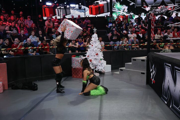 何やってんの? 美女レスラー、クリスマスツリーに向かって“まさかの行動” 衝撃展開に実況も唖然 WWE 2025/12/25 20:30 拡大する まさかの出来事に、会場が一気に笑いに包まれた。ミックスドタッグマッチで思わぬハプニングが発生し、大きな話題を呼んでいる。 話題となっているのは日本時間12月24日に放送された「NXT」での出来事。アリアナ・グレイス&スタックス組が、シロア・ヒル&スカイラー・レイ組と対戦した反則なしの「クリスマス・カオス ミックスドタッグマッチ」。その名の通り、通常とは異なる自由度の高いルールで行われた一戦だった。 続きを読む