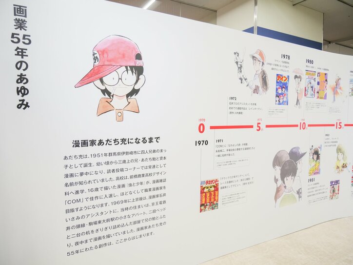 『タッチ』など名作漫画のあのシーンを振り返る!「―画業55周年記念― あだち充展」会場レポート 2025/12/26 07:00 拡大する 『タッチ』『みゆき』『クロスゲーム』など、数多くの代表作を持つ漫画家・あだち充氏が、1970年のデビューから2025年で55年を迎えた。「―画業55周年記念― あだち充展」は、漫画家生活と作品を振り返る大規模展示会として、2025年12月19日(金)〜2026年1月14日(水)まで、池袋・サンシャインシティ 展示ホールCにて開催されている。 本展示会の模様を、報道関係者向け内覧会にて撮影した写真を中心にお届けしていこう。 続きを読む 2025秋アニメ(10月クール) 作品情報 もっとみる(74) 笑顔のたえない職場です。 ガングリオン さわらないで小手指くん 忍者と極道 父は英雄、母は精霊、娘の私は転生者。 キングダム 第6シリーズ