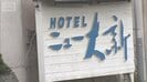突然の休業で連絡がつかなくなった「ホテルニュー大新」。入り口には休館を知らせる紙が貼られています。