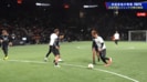 柿谷はチーム中澤の一員として出場。見せ場が訪れたのは、試合時間残り3分30秒の場面だ。センターライン付近でボールを持った柿谷は、プレスにきた本田が腰を落とす中で股を抜いて突破。最後のシュートはGK権田修一にセーブされたものの、元日本代表の“天才”が見せた美技に場内が沸いた。