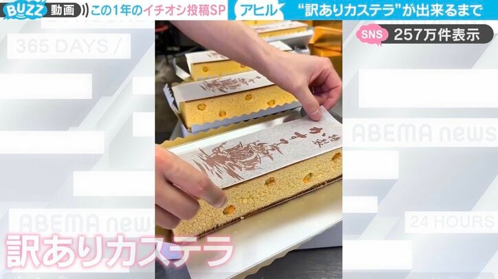 「訳ありカステラが出来るまで…」断面に登場する“訳あり”が、SNSで250万件表示!「可愛い遊び心」「丁寧に作られている様子が伝わってくる」 週刊BUZZ動画 2025/12/29 12:41 拡大する 「訳ありカステラが出来るまで」というコメントと共に投稿された動画が、SNSで話題となっている。 動画をはじめから見ると…作っているのはカステラではなく、可愛らしいアヒルたち。中には一羽だけ、小さなニワトリも。そしてここからは、カステラを作っていく行程に移る。職人らしい手さばきで、生地を作っていき、型の中へ。そのままふっくらと焼き上げる。綺麗に出来上がったカステラ、どこにも「訳あり」の要素は見当たらないが、切り分けた断面に穴をあけ、そこへアヒルたちを埋め込んでいく。なんとも可愛らしい“訳あり”カステラの完成だ。 続きを読む