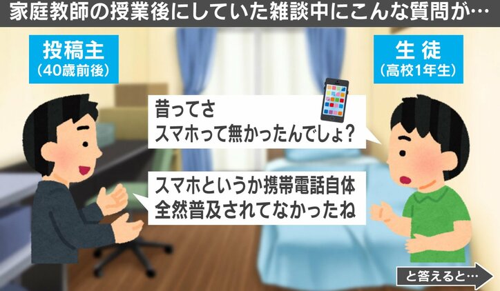スマホが無い時代なにして過ごした?“スマホ普及前”の時間の潰し方に「僕はMDウォークマン聴いたりしてましたね」と反響続々 わたしとニュース 2025/12/27 11:45 【映像】「時間を楽しんでた」?スマホ普及前の過ごし方 この記事の写真をみる(5枚) 高校生と家庭教師の“スマホ普及前”をめぐる会話が注目を集めている。【映像】「時間を楽しんでた」?スマホ普及前の過ごし方 投稿したのは、データムゴリスターさん(@DATAM_GOLYSTAR)。投稿主(40歳前後)が家庭教師の授業後に、生徒(高校1年生)との雑談でスマホや携帯電話の普及前は「電車に乗ってる時間とか、何して時間潰してたの?」と質問されたことを、Xに投稿した。投稿主は、電車に乗っている間に何をしていたのか回答に戸惑ってしまったという。 あなたは何してた?“スマホ普及前”の時間の潰し方に懐かしむ声続々 1 2 【画像】「時間を楽しんでた」?スマホ普及前の過ごし方 【映像】田んぼから勢いよく飛び出す“まさかの生き物”(実際の映像) スーパーマーケット内の花屋さんが“まるで異世界”と大反響 この記事の写真をみる(5枚) Twitter