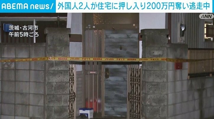 茨城県古河市で、外国人の男2人が住宅に押し入り、寝ていた40代の男性に刃物を向けて脅し、現金およそ200万円を奪いました。2人は現在も逃走中です。