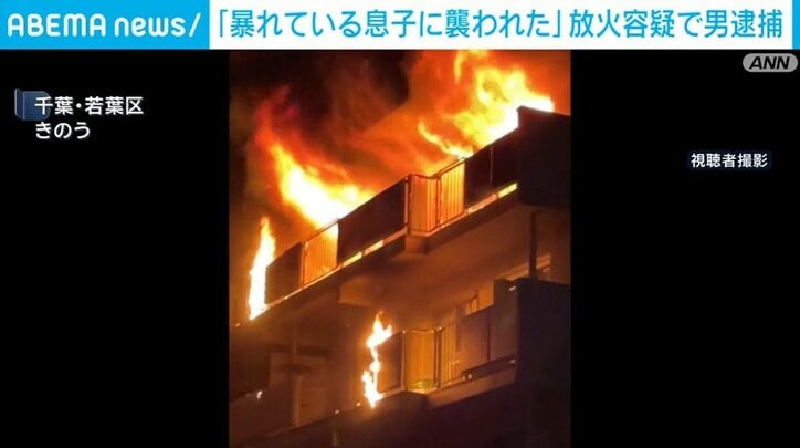 きのう午後5時40分すぎ、千葉市若葉区の集合住宅で「暴れている息子に襲われた」と女性から119番通報がありました。警察官が現場に駆け付けたところ、5階建ての集合住宅の4階にある1室から火が出ているのを見つけたということです。