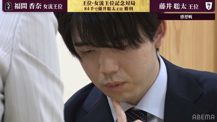 ABEMAでは、対局前に行われた対談の模様を放送。藤井王位は2025年について、「序盤の作戦に関して幅を広げていけたらと意識していた」とコメント。初めて2手目34歩を採用するなど、新しい取り組みを行ったと振り返った。一方で、中終盤の指し手の精度に課題を感じ、「結果にも出てしまった」と述べた。