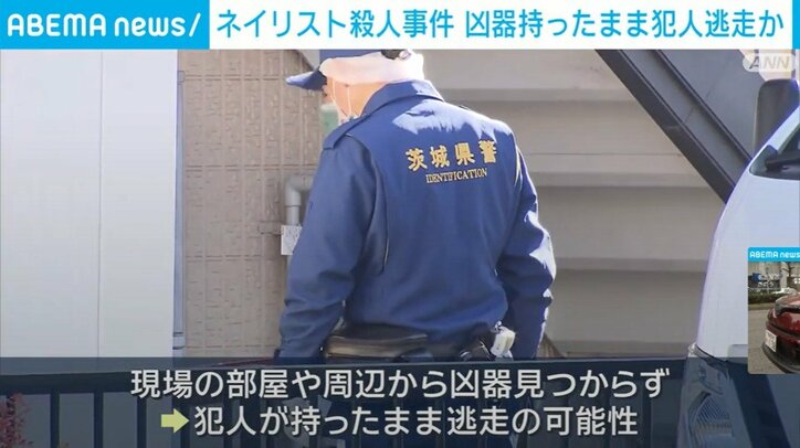 水戸市のアパートの一室でネイリストの女性が殺害された事件で、現場の部屋や周辺から凶器が見つかっていないことがわかりました。