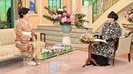 また「帯も見せて」と促されると、名取は「これは唐織なんですけど…」と立ち上がる。伝統的な『有職花紋(ゆうそくはなもん)』をあしらった格式高い帯であること、本金が織り込んであることなどを解説すると、その優雅な逸品に黒柳も「きれい」「すごい…」と感嘆しきりだった。