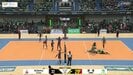 好プレーで得点を挙げた直後、味方が重なり合うように祝福する微笑ましい光景が繰り広げられた。その歓喜の輪に足元から飛び込んだ陽気なミドルブロッカーが、面白い行動で喜びをあらわにした。