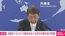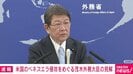 「我が国は従来から自由、民主主義、法の支配といった基本的価値、これを尊重してまいりました。当然国連憲章を含む国際法上の原則、これは尊重されなければならないと考えております」としたうえで、「ベネズエラについて申し上げますと、マドゥロ政権下における人権問題であったり不透明な選挙、また、多くの避難民の流出等々についてはご案内だと思いますが、懸念すべき状況がこれまでずっと長い間続いてきたわけであります。我が国としては一刻も早くベネズエラにおける民主主義が回復をされ、情勢が安定することが重要であるとの一貫した立場に基づいて、避難民を含みますベネズエラ国民への民生支援に加えて、影響を受けている周辺国に対しても支援を行ってきているところであります。先日G7の外相会談を行ったところでありますけれど、ベネズエラにおいて民主主義が回復され、情勢が安定化することが重要だっていうのは、一致した見解であったと考えております。引き続きG7や関係国と緊密に連携をしながら、ベネズエラにおける民主主義の回復および情勢の安定化に向けた外交努力を進めていきたい」と述べた。