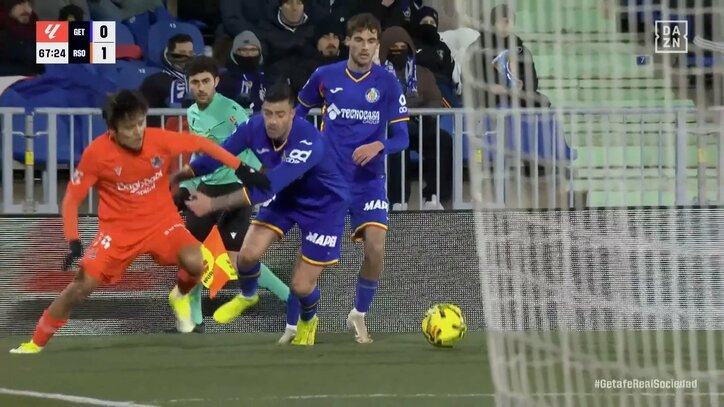 何が起きた?久保建英、超技巧ドリブル&圧巻股抜きで密集突破の瞬間「やりたい放題だな」「あそこから行けるのか」 ラ・リーガ久保建英 2026/01/11 12:05 拡大する 【ラ・リーガ】ヘタフェ 1-2 ソシエダ(日本時間1月10日/コリセウム・アルフォンソ・ペレス) ソシエダに所属する日本代表MFの久保建英が、キレキレのドリブルを披露。スペースがない状態で見せた股抜きにファンたちが大興奮している。 ソシエダは日本時間1月10日に行われたラ・リーガ第19節でヘタフェと対戦。ペッレグリーノ・マタラッツォ新監督の2戦目で、久保は右ウイングとして先発出場した。 前半こそ、対峙するDFディエゴ・リコのマークに苦しめられていた久保だったが、後半は一気にギアを上げて右サイドから何度もチャンスを創出。1点リードで迎えた68分には、右サイドからのスローインの流れからボールを奪った久保が、圧巻のテクニックを見せる。 続きを読む