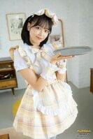 5人目に登場した江下は、黄色のメイド服に、水着カットではいつもより大人っぽいグラビアを披露している。