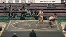 立ち合い、風ノ華は、体の大きな輝の里の中へと潜っていく。しかし圧力に屈して、風ノ華はジリジリと後退。風ノ華はこの状況を打開しようと、体勢を変えたが、輝の里は右手で強引に投げに出た。