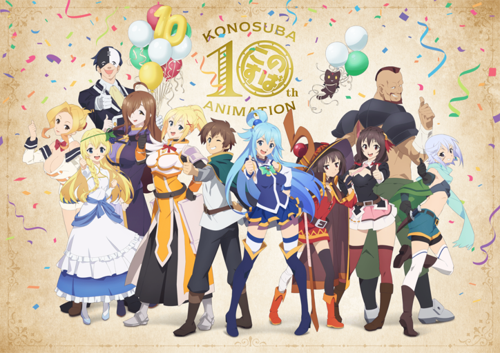 アニメ4期制作決定!「この素晴らしい世界に祝福を!」メインキャラ集合のアニメ10周年記念ビジュアル公開 この素晴らしい世界に祝福を! 2026/01/14 15:30 拡大する アニメ『この素晴らしい世界に祝福を!』TVアニメ4期の制作が決定した。あわせて、アニメ10周年ビジュアルや、10周年関連の企画が公開された。 『この素晴らしい世界に祝福を!』は、不慮の事故により異世界に転生したゲーム好きの引きこもり・カズマこと佐藤和真(CV:福島潤)が主人公の異世界コメディ。カズマは、道連れにした女神のアクア(CV:雨宮天)、中二病をこじらせた魔法使いのめぐみん(CV:高橋李依)、妄想癖のある女騎士ダクネス(CV:茅野愛衣)といった個性的なメンバーとパーティを組み、冒険者生活を送ることになる。当初の「勇者を目指す」という目標とは裏腹に、トラブル続きの日常や魔王軍とのドタバタな戦いを描いた人気作品だ。 続きを読む 2026年冬アニメ(1月クール) 作品情報 もっとみる(67) 火喰鳥 羽州ぼろ鳶組 【推しの子】 3期 カードファイト!! ヴァンガード 正反対な君と僕 メダリスト 第2期 人外教室の人間嫌い教師