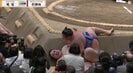 立ち合い変化を加えたベテラン35歳の竜電。対する24歳・欧勝海は空を切って突っ込んでしまい、土俵際でなんとか体勢を向き直すも、まわしを取られて厳しい状態に。だが踏ん張った欧勝海はもろ差しからまわしを掴んで必死の抵抗。抱え込んで寄る竜電が優勢に見えたが、欧勝海が驚異的な粘りを見せ、最後は欧勝海が見事にうっちゃりを決めて勝利した。