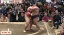 幕内力士では最も重い体重195キロの巨漢力士、熱海富士。体重153キロの美ノ海と対決した四日目の取組では、立ち合い当たって一気に前に出て先手を取った。だがこらえた美ノ海が右四つに組んで反撃。両まわしを掴み、胸を合わせてがっぷり四つの展開となった。最後は大きな体の熱海富士が寄っていき、一度は耐えた美ノ海だったが、圧力をかけて前に出た熱海富士が勝利した。熱海富士は寄り切りで勝って2勝目。敗れた美ノ海は2敗目を喫した。