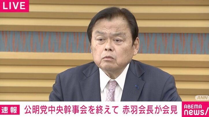 赤羽代表は新党設立の対応は「斉藤鉄夫代表に一任」、新党には衆院議員が先行して合流し、参院議員は今後、順次合流すると明かした。