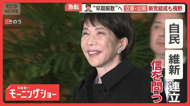 高市早苗総理が14日、与党の幹部と会談して衆議院を早期に解散するという意向を伝えました。来月8日の投開票を軸に検討が進められていますが、こうした中で、立憲民主党と公明党が新党の結成も視野に調整に入ったことが分かりました。