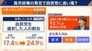 朝日新聞が大阪大学と共同で行ったネット意識調査によると、投票したい政党で自民党を選んだ人は去年6~7月に17.4%だったのが、高市総理就任後の去年11月25~28日に行われた調査では24.9%に増加した。