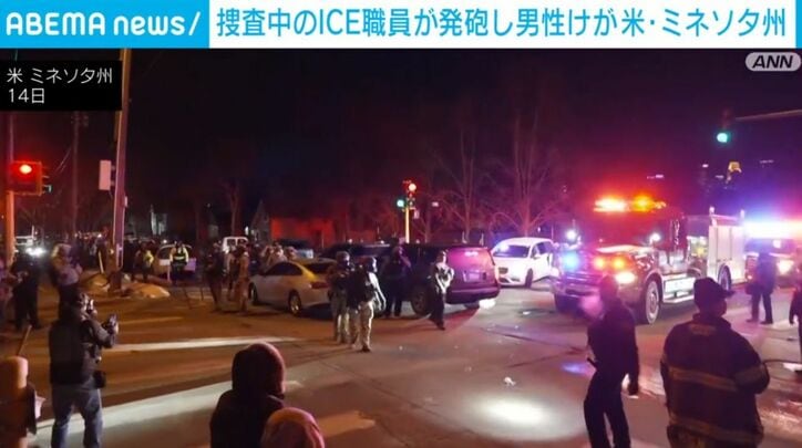 アメリカ・ミネソタ州で女性がICE=移民・税関捜査局に撃たれて死亡した事件への批判が強まる中、捜査中のICE職員が男性に向けて発砲し男性は足にけがをしました。