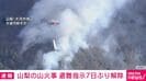 8日から延焼が続く山梨県の山火事について、上野原市の一部に出されていた避難指示が7日ぶりに解除されました。