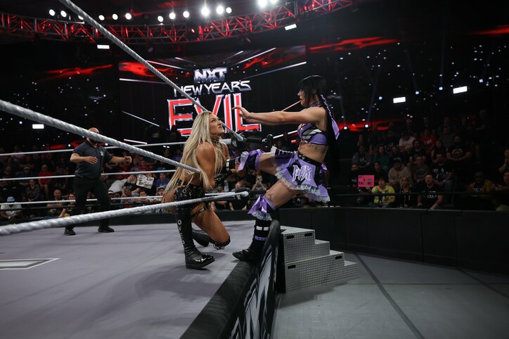 “リングの一番硬いところ”で高速回転カカト落とし…遺恨女子マッチで炸裂した“エプロン地獄”に観客騒然 WWE 2026/01/16 21:00 拡大する 仲が悪すぎて、一発一発の攻撃がエグすぎる。元タッグパートナー同士の抗争で飛び出した「リングの一番硬いところ」での高速回転カカト落としに騒然。自分も腰を強打してなお笑顔のサイコぶりに「なぜそこまでする?」「自分も痛そうで草」「割とギリギリだな」と、ファンの困惑と熱狂が交差した。 WWE第3ブランドNXTの特番「NXT New Year's Evil 2026」でのテイタム・パクスリーとイジー・デイムの遺恨試合を、NXT公式がピックアップ。互いの嫌悪が交差し、斬新な痛めつけ攻撃の応酬の最中に飛び出した、エプロンでの回転式“地獄の断頭台”が物議を呼んでいる。 続きを読む