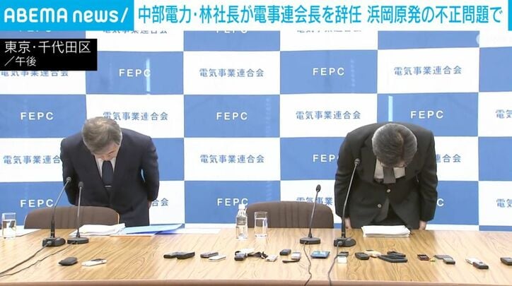 浜岡原子力発電所のデータ不正問題で、中部電力の林社長は電力会社の業界団体トップを辞任しました。