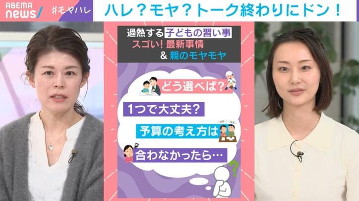 「習い事の予算は世帯収入の5%が目安」と専門家が指摘…過熱する“令和の習い事事情”予算はいくらまで?59%の親が“我慢”も わたしとニュース 2026/01/17 12:30 拡大する 子どもの習い事選びは、親にとって大きな悩みの1つだ。どう選べばいいのか、予算の目安はいくらくらいか、子どもに合わなかったらどうすべきか……。 ニュース番組『わたしとニュース』では、習い事に関する実態調査や専門家の意見を交え、OTEMOTO創刊編集長の小林明子氏とともに現代の親たちが抱える葛藤について深掘りした。 続きを読む