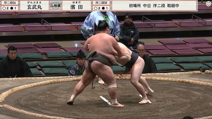 「行司の体デカくね?」力士より体格が目立つ22歳行司にファン熱視線「見る度に大きくなってそのうちお相撲さんに…」 大相撲 2026/01/19 10:50 拡大する <大相撲初場所>◇中日◇18日◇東京・両国国技館 連日熱戦が繰り広げられている両国国技館。大きな体の力士たちが日々、ひとつの勝ち星を追いかけて、しのぎを削っているが、そんな中で力士よりも体格が目立つ、22歳行司の姿に「行司の体デカくね?」とファンが注目した。 それは序二段五十四枚目・玄武丸(尾上)と序二段五十六枚目・濱田(錣山)の取組での一コマだった。玄武丸は身長170.5センチ、体重147.6キロと決して小さいわけではないが、巨漢が集う角界の中では特別大きいわけでもない。 続きを読む