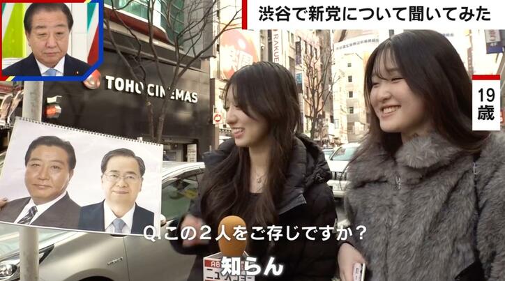 立憲×公明の新党に若者世代は「顔を知らない」「期待感を持てるような政策を考えて」…期待にどう応える?野田・斉藤代表が見解 ABEMA的ニュースショー千原ジュニア,田中萌 2026/01/18 19:45 拡大する 立憲民主党と公明党が新党「中道改革連合」を結成し、他党からは様々な反応が出ている。そんな中、若者世代はどう思っているのか。街で聞いた。 ABEMA的ニュースショーでは10代〜20代の若者を対象に街頭インタビューを実施。立憲の野田佳彦代表と公明の斉藤鉄夫代表の写真を見せて「この2人ご存知ですか?」と聞くと「知らん」(19歳女性)、「(野田代表を指して)こっちだけ知っている」「野田さん」(21歳女性)、「見覚えがある」(28歳男性)といった反応が。さらに「この2人は何の組み合わせ?」と質問すると、「似てる?」「仲悪い?」(21歳女性)という回答だった。 続きを読む