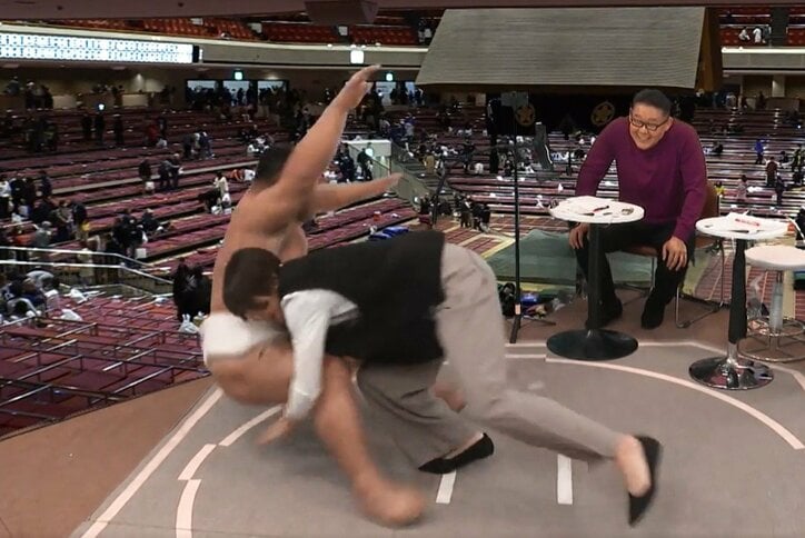 女子陸上の元日本記録保持者が相撲芸人に“鬼”タックル 「うおっ」苦悶の表情も「ご褒美タックル」「嬉しそうw」ファンからはツッコミ 大相撲 2026/01/18 21:23 拡大する <大相撲初場所>◇中日◇18日◇東京・両国国技館 一月場所の中日、大相撲中継に女子陸上の元日本記録保持者が登場。相撲芸人に対して放った“鋭すぎるタックル”がファンの爆笑と驚きを誘った。不意の衝撃に悶絶した芸人だったが、その後の爽やかな交流に、ファンからは「ご褒美かよ」「あかつ嬉しそう」といったツッコミが相次ぐ一幕があった。 この日、ゲストとして登場したのは女子100mハードルの元日本記録保持者で、過去には7人制ラグビーにも挑戦した寺田明日香。トークが競技の特性に及ぶと、実況の藤井康生アナウンサーが「せっかくですから、二刀流でラグビーにも挑戦したということで…あかつさんにタックルを(笑)」と、隣に控えていた相撲芸人のあかつにまさかの無茶振り。寺田は「え、いいんですか?(笑)」とはにかみながらも、元アスリートのスイッチが入った。 続きを読む