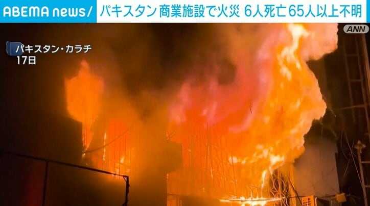 パキスタン 商業施設で火災 6人死亡65人以上不明 速報 2026/01/19 15:56 拡大する パキスタンのショッピングモールで発生した大規模な火災で、死者は6人に増えました。また行方が分からない人が65人以上いるということです。 パキスタン南部にある最大都市カラチのショッピングモールで17日夜、大規模な火災が発生しました。消火活動は24時間以上におよび、施設の大半が焼け落ちました。これまでに消防士1人を含む6人が死亡し、少なくとも20人が負傷しています。 ロイター通信は行方が分からない人が65人以上いて、捜索が続いていると報じています。地元メディアなどによりますと火元は1階とみられ、店舗の1つで電気がショートしたことが原因ではないかということです。 続きを読む