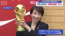 6月に開かれるサッカー・ワールドカップ。その本物の優勝トロフィーを手にして嬉しそうな高市総理大臣。