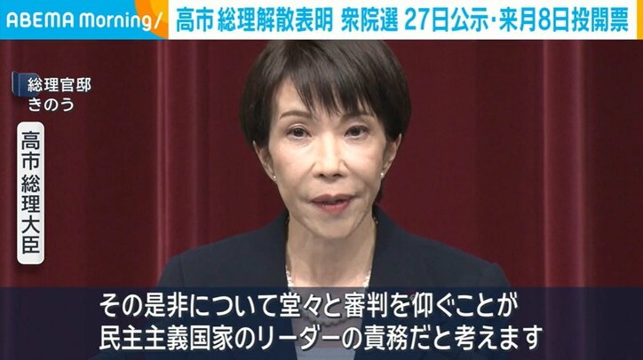 高市総理解散表明 衆院選 27日公示・来月8日投開票 速報 2026/01/20 08:08 拡大する 高市総理大臣は、通常国会の冒頭で衆議院を解散し、今月27日公示、来月8日投開票の日程で衆院選挙を実施すると表明しました。高市総理大臣「重要な政策転換について国民の皆様に正面からお示しし、その是非について堂々と審判を仰ぐことが民主主義国家のリーダーの責務だと考えました」 高市総理は、「経済政策を大きく転換し、行き過ぎた緊縮志向、未来への投資不足の流れを終わらせる」と強調しました。「総理大臣としての進退をかける」と覚悟を示したうえで衆院選の勝敗ラインについては「与党で過半数」としました。 続きを読む